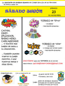 Dicha jornada ha sido posible gracias a la colaboración con la Asociación Cultural Torre de Dados que ha enviado a dos experimentados monitores junto con una extensa Ludoteca.