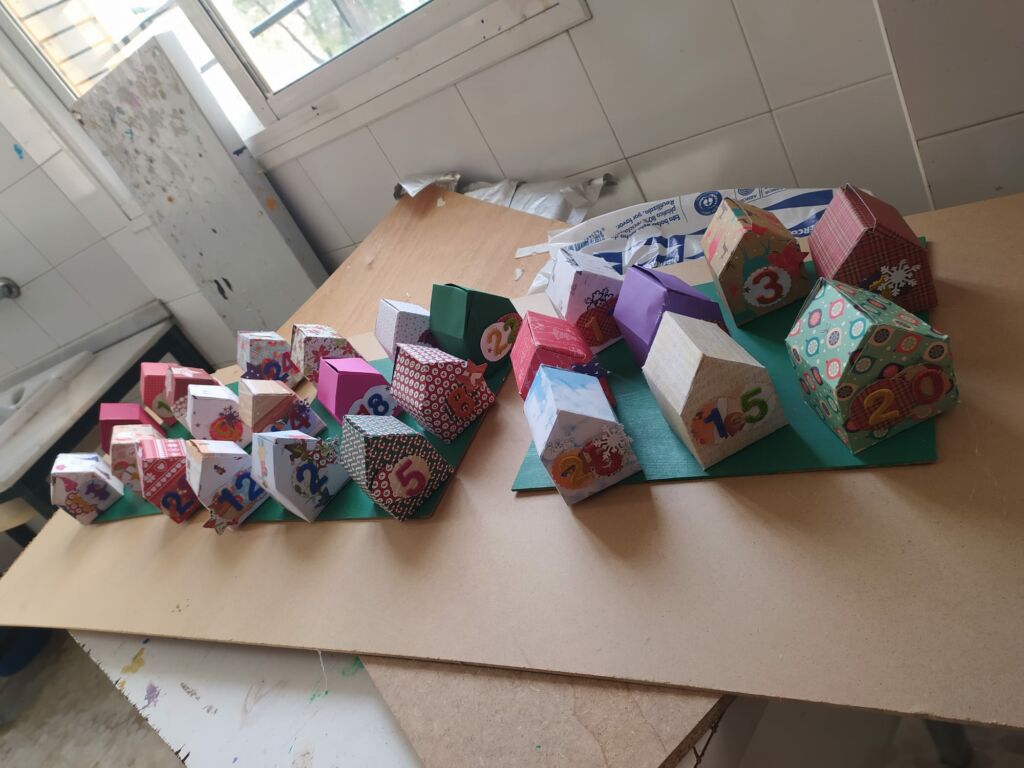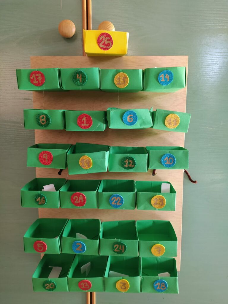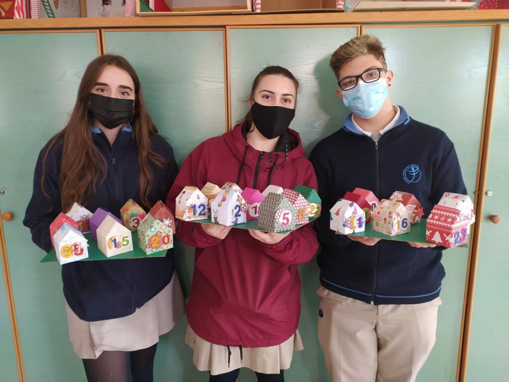 En este atípico curso en el que estamos inmersos, hemos querido participar en esta tradición, y hacer una especial colaboración entre las etapas de Infantil y Secundaria. Desde la asignatura de Plástica de 4º de ESO se propuso a las señoritas de Infantil construir un calendario para cada clase. Ellas a su vez idearon 25 deseos para leer uno cada día en asamblea con sus alumnos, trabajando así diferentes valores que deberían estar presentes en nuestro día a día, y que hacemos bien en recordar y reforzar en estas fechas.