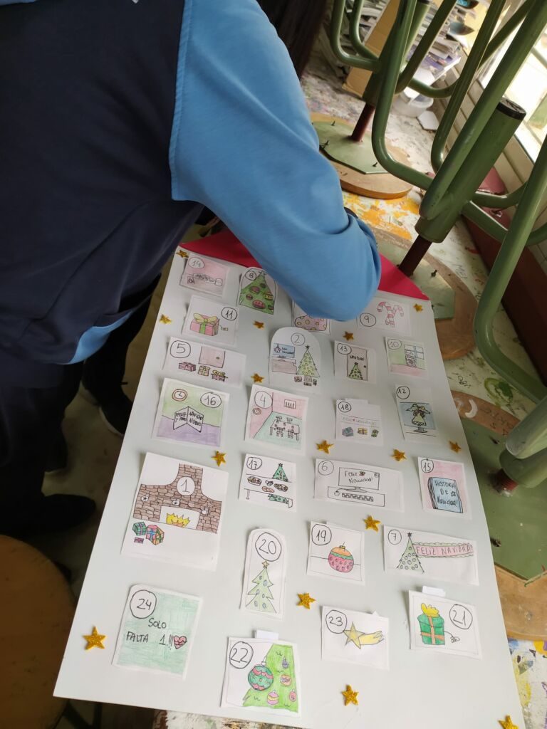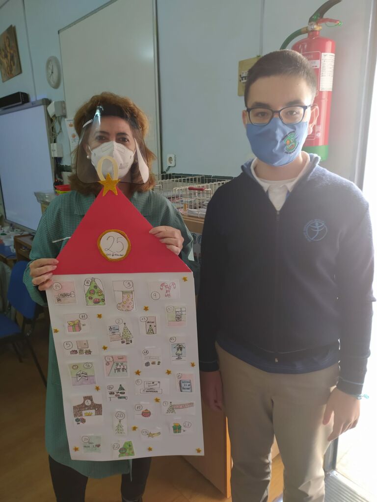 Los alumnos se dividieron en tres grupos, y han estado dos semanas haciendo sus calendarios con mucha ilusión. El pasado Lunes, 30 de noviembre, un miembro de cada grupo fue a entregar el calendario a cada una de las clases, siempre cumpliendo con las medidas de seguridad del centro. Tanto las profesoras como los alumnos los recibieron con gran entusiasmo y alegría.
