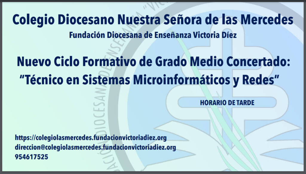 A partir del próximo curso nuestro CICLO FORMATIVO DE GRADO MEDIO perteneciente a la familia profesional de INFORMÁTICA denominado TÉCNICO EN SISTEMAS MICROINFORMÁTICOS Y REDES dejará de ser privado para ser CONCERTADO.