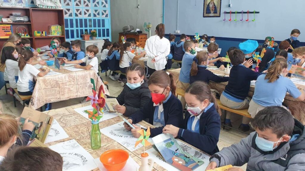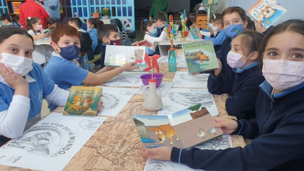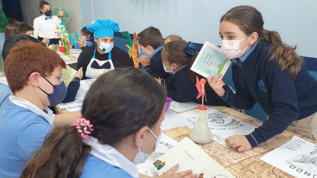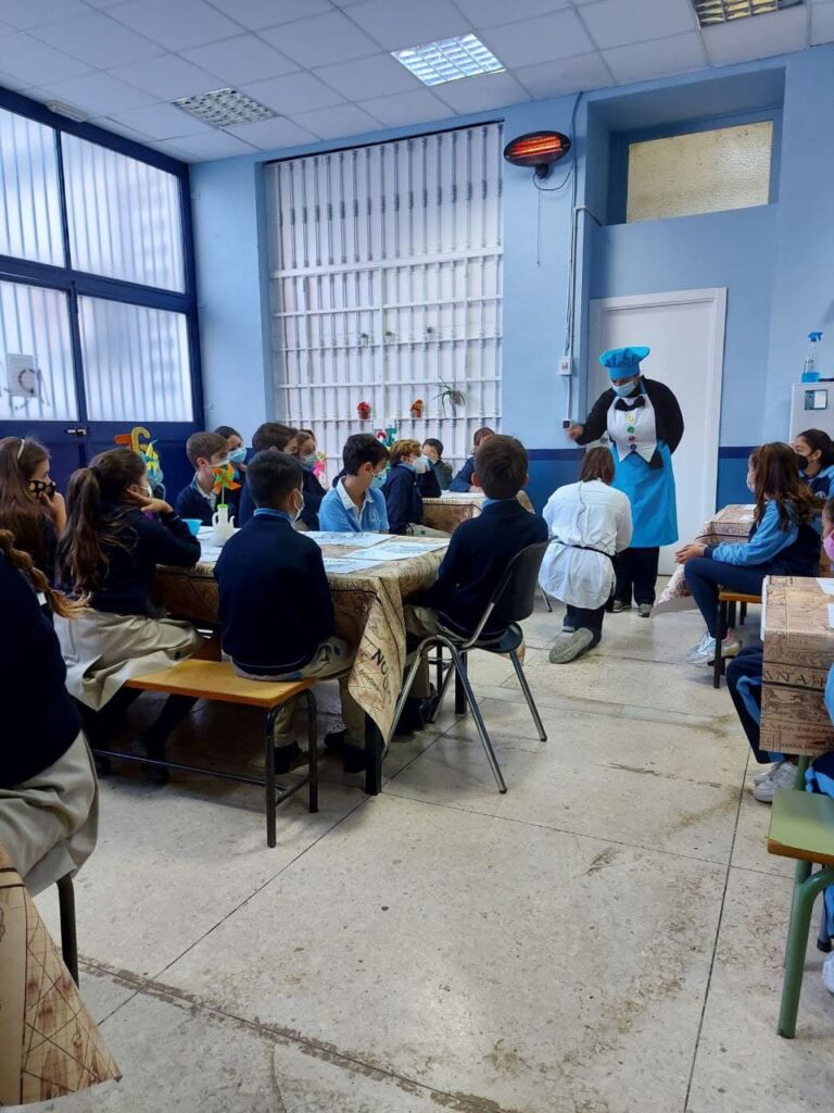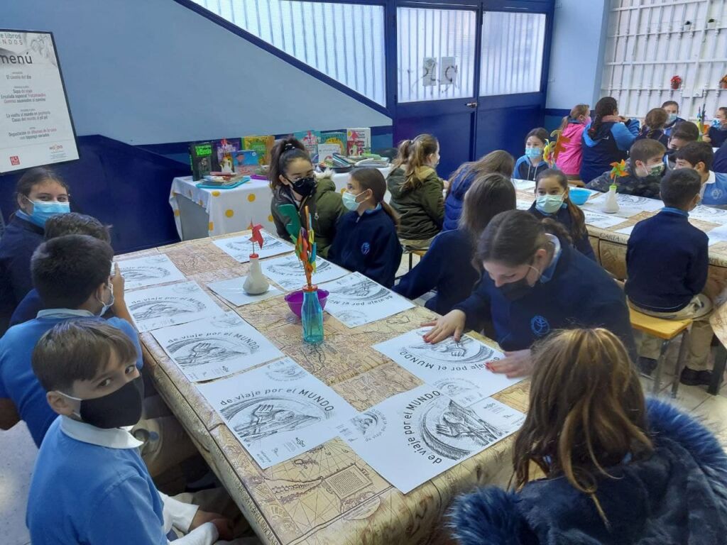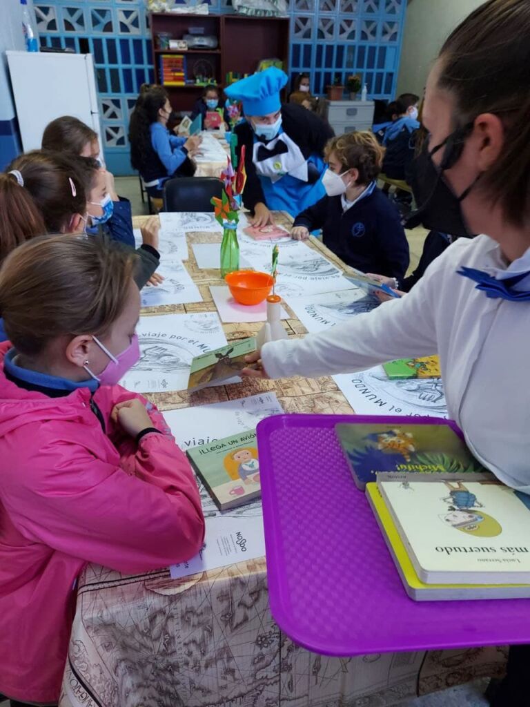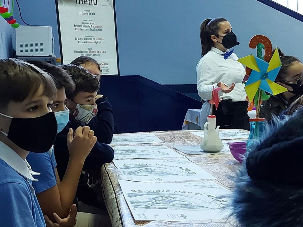 El restaurante de libros se realizó en el espacio dedicado al Comedor del colegio. Para esta actividad se contó con tres monitoras, siendo uno quien encarnó el rol de una Chef (de ahí que se trate de una persona Graduada en Interpretación por la Escuela Superior de Arte Dramático de Sevilla); la otra monitora interpretó el papel de camarera, y, la tercera monitora realizó funciones de recepción, acompañamiento y acomodamiento en el restaurante. A continuación os dejamos unas fotografías de la actividad: