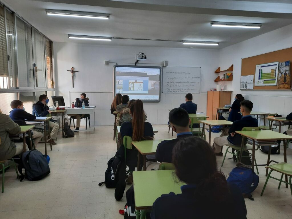 Este año pandémico estos talleres se llevan a cabo, debido al protocolo COVID, por videoconferencia mediante la pizarra digital de las aulas, en las que los alumnos/as interactúan con los monitores que imparten cada uno de los talleres.